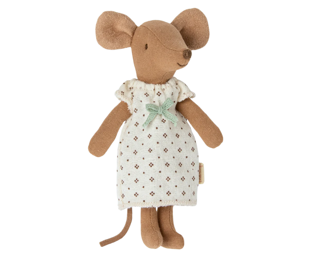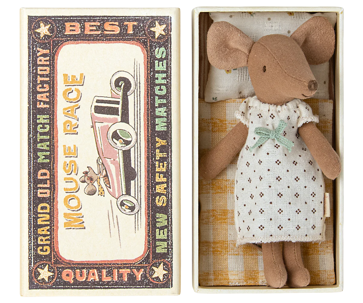 Ein klassischer Maileg-Artikel. Diese Maus ist bereit für stundenlanges Spielen und schläft fest in der Streichholzschachtel. Die Kleidung und Bettwäsche kommt mit einzigartigen Maileg-Drucken und schönen Farben.